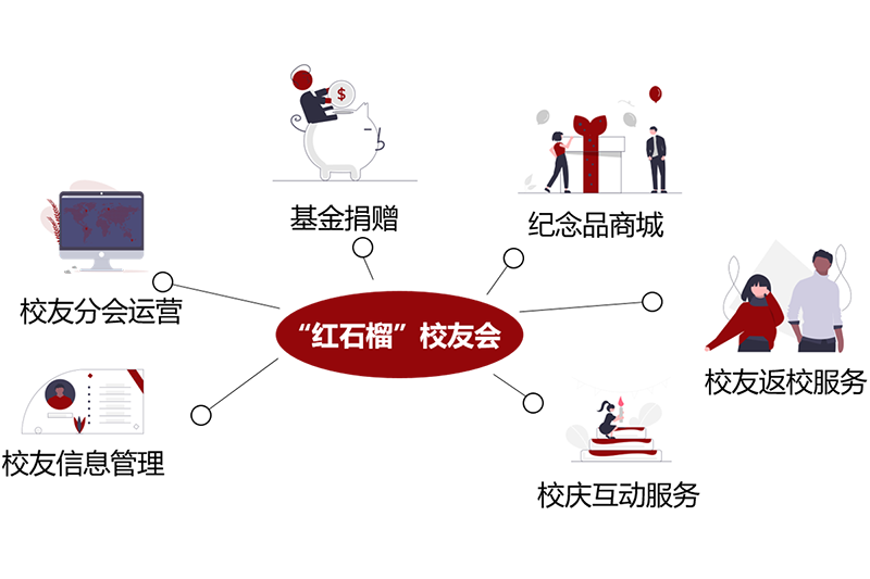 “紅石榴”校友會(huì)專注于高校智慧校友平臺(tái)的研發(fā)及運(yùn)營(yíng)解決方案,涵蓋了高校校友會(huì)和教育基金會(huì)的一站式服務(wù)需求,工作開展的目的在于“為校友的終身發(fā)展服務(wù)”,做到真心誠(chéng)意為校友的終身發(fā)展服務(wù),同時(shí)也會(huì)實(shí)現(xiàn)學(xué)校的長(zhǎng)遠(yuǎn)發(fā)展。